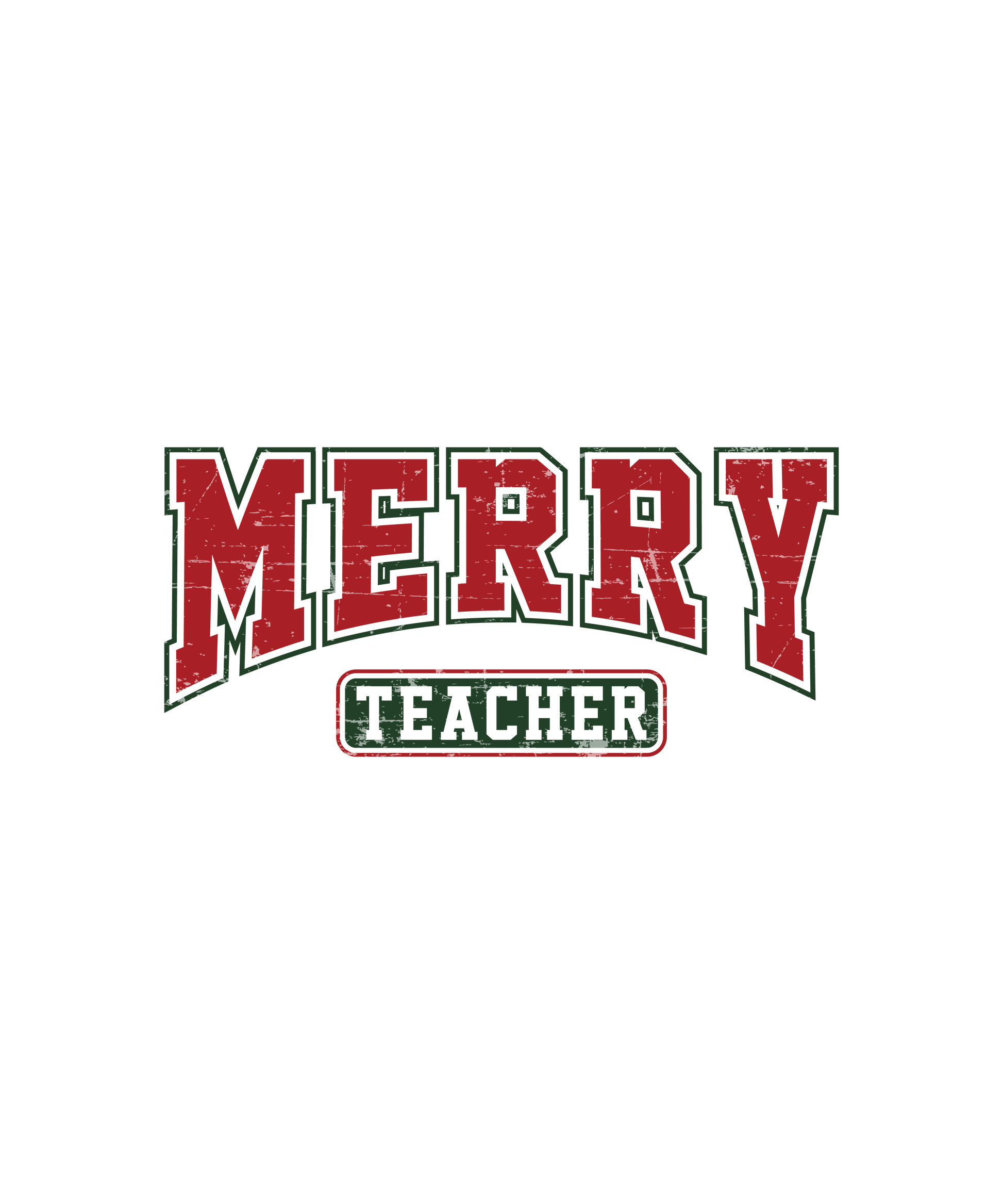 Retro varsity-style “Merry Teacher” design
